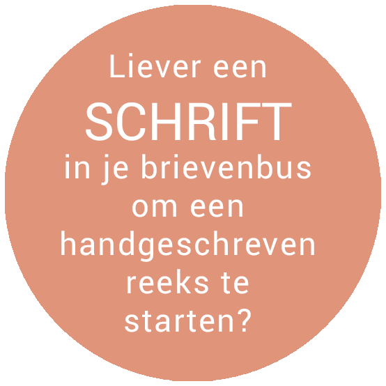 Wil je graag een fysiek schrift in handen krijgen en een eigen reeks starten? Stuur me je adres, zo lang er nog een beschikbaar is, kun je er een in je brievenbus verwachten.