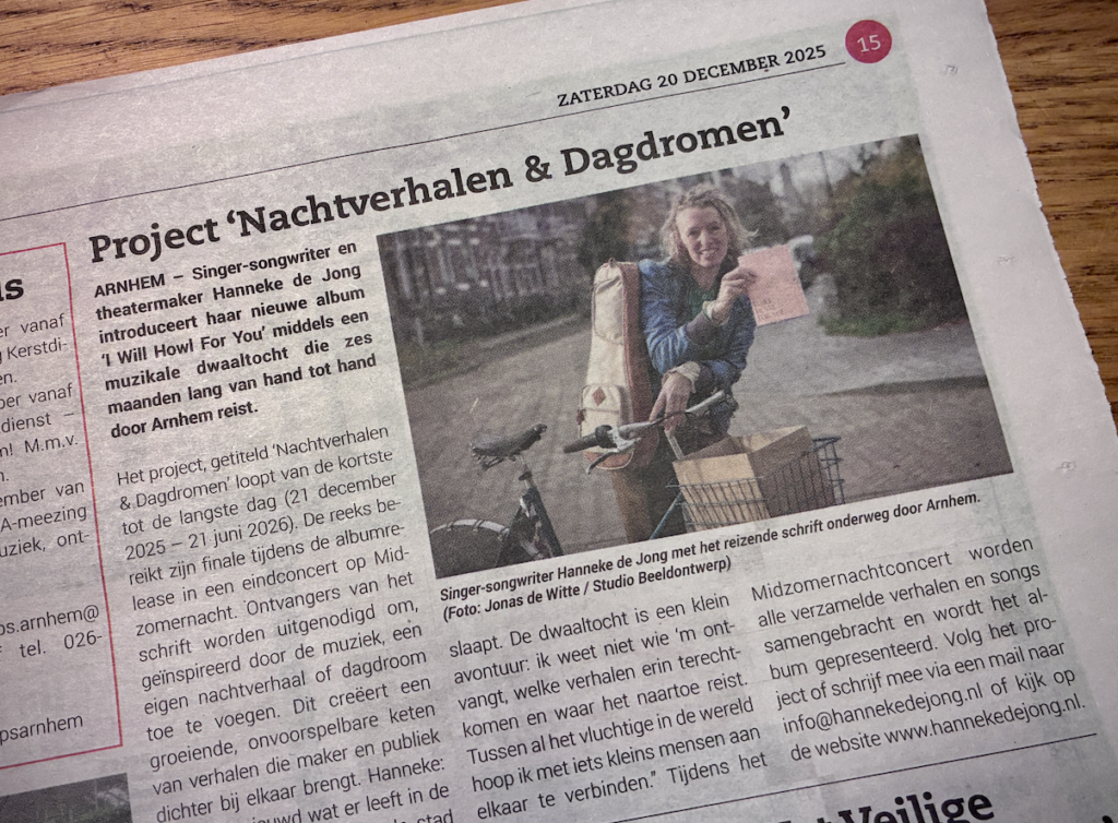 Wat leuk dat je erbij wilt zijn! Ik weet nog niet precies hoe ik dit ga aanpakken of hoe groot het gaat worden – het project is een experiment! Volg me via de Nachtpost, dan houd ik je graag op de hoogte. Ook op Facebook en Instagram zal ik af en toe updates delen.